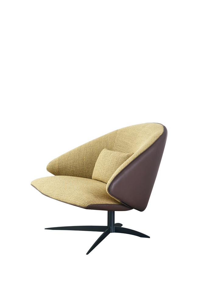 The Lounge chair is an exclusive and elegant furniture. It comes with a high-end structure in metal and a refined cover in either one of the fabrics or leathers available in the collection.