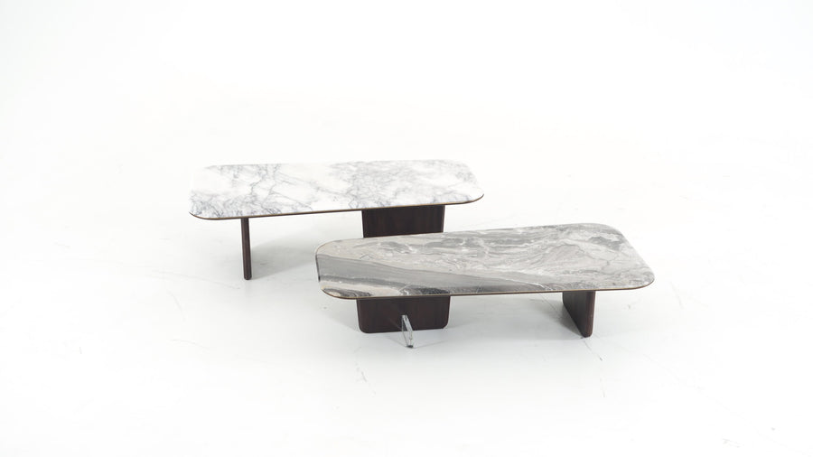 Our Coffee Table, adopts the round shape, the rounded smooth edges offer a sense of fluidity whilst the table top effortlessly rests on the two legs.