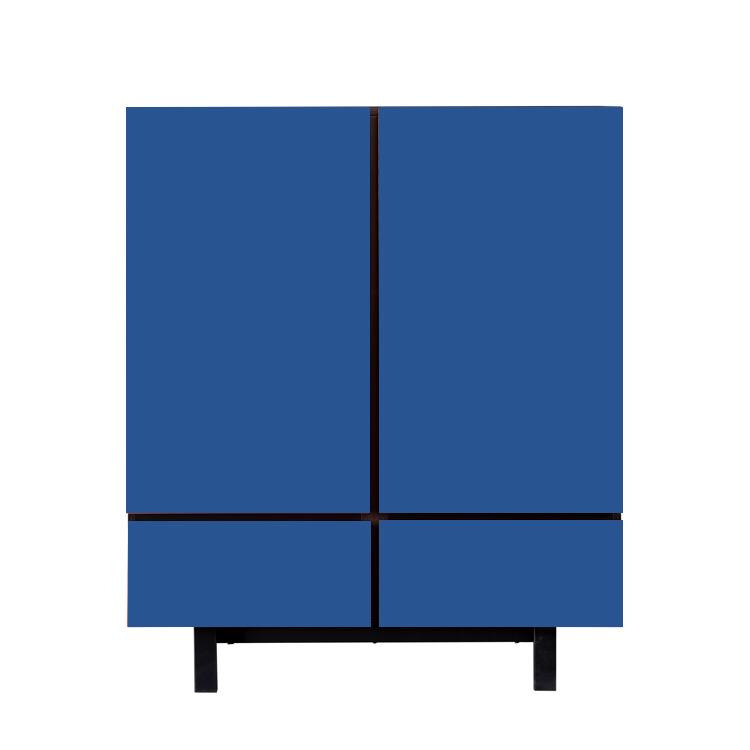 A beautifully hand-made lacquered dove blue solid wood bedside or sofa side cabinet. Offering a double cupboard with a removable shelf and a drawer, this beautiful cabinet is ideal placed as a pair as bedside or sofa side tables. With gloss wood base.