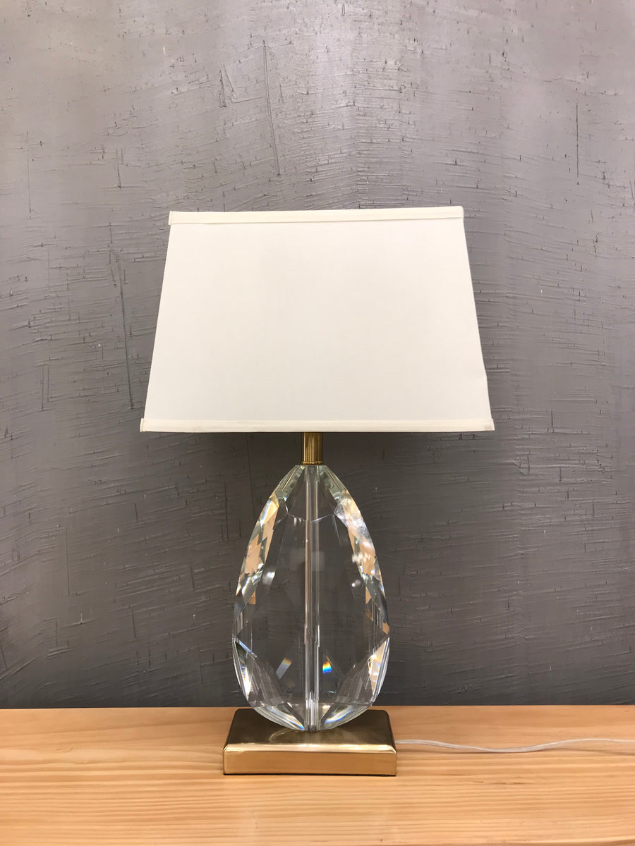 A crystal lamp features a base or body crafted from crystal elements, creating a luxurious and elegant lighting fixture. The crystal elements refract light, adding a dazzling and decorative touch to the ambiance of a room.