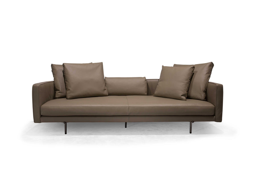 Elegant and stylish sofa, Leather upholstery and seating padding with high-density foam add maximum comfort for you when lounging after a long day. Come with a solid wood frame and metal legs.
