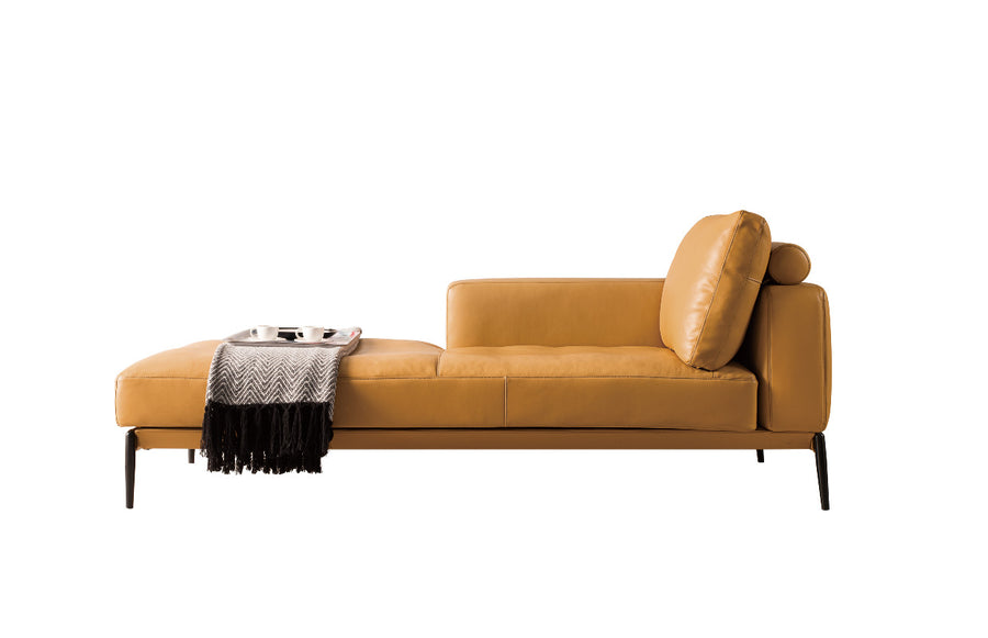 Short of space and still want a sofa cum bed like comfort? Try this all new leather lounge sofa which is mustard yellow in color. It has broad rectangular back support on one end while the other is free. Buy it at affordable prices form Coppice – the best furniture store in Delhi.