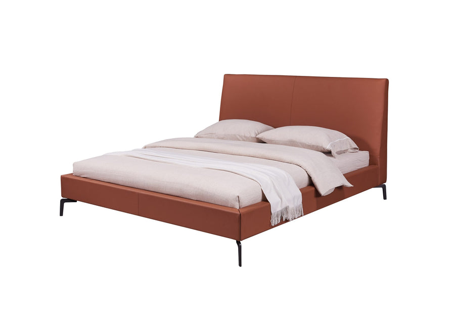 simple relax Leatherette Upholstered Bed. It is supported by flared metal legs, providing support and durability.