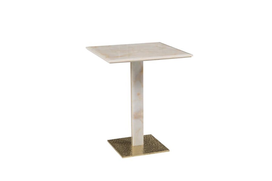 Beautiful square marble top with luxurious square brass base makes a perfect marble table. The design and effect of the base gives it an elegant and modern look, while the marble creates life. The side table will appear elegant and exclusive in any room, and it provides a sophisticated look.