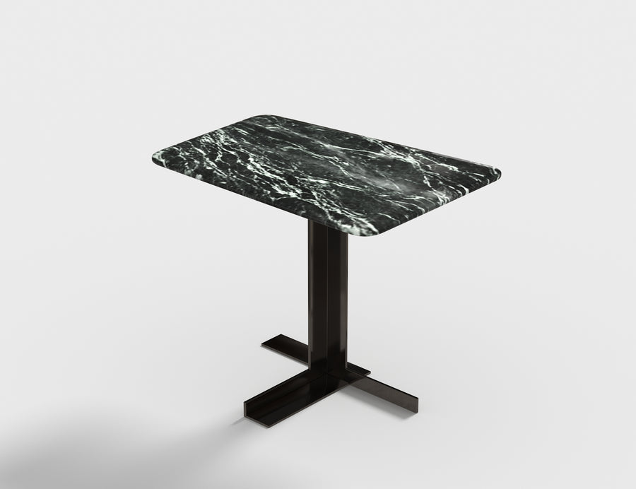 A stunning end table with slanting brown square marble and single iron stand which has a T shaped base, it represents modern elegance for today's living room. It’s a statement piece which is decorated with golden metal finish. You can buy this easily from our premium furniture store near you.