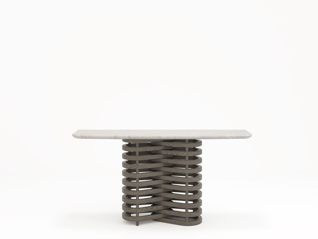 Crafted with solid wood and adorned with white natural marble, this console adds a touch of elegance to any space. The combination of sturdy materials ensures durability and the sophisticated design elevates the aesthetic of the room. Enhance your decor with this unique and stylish piece.